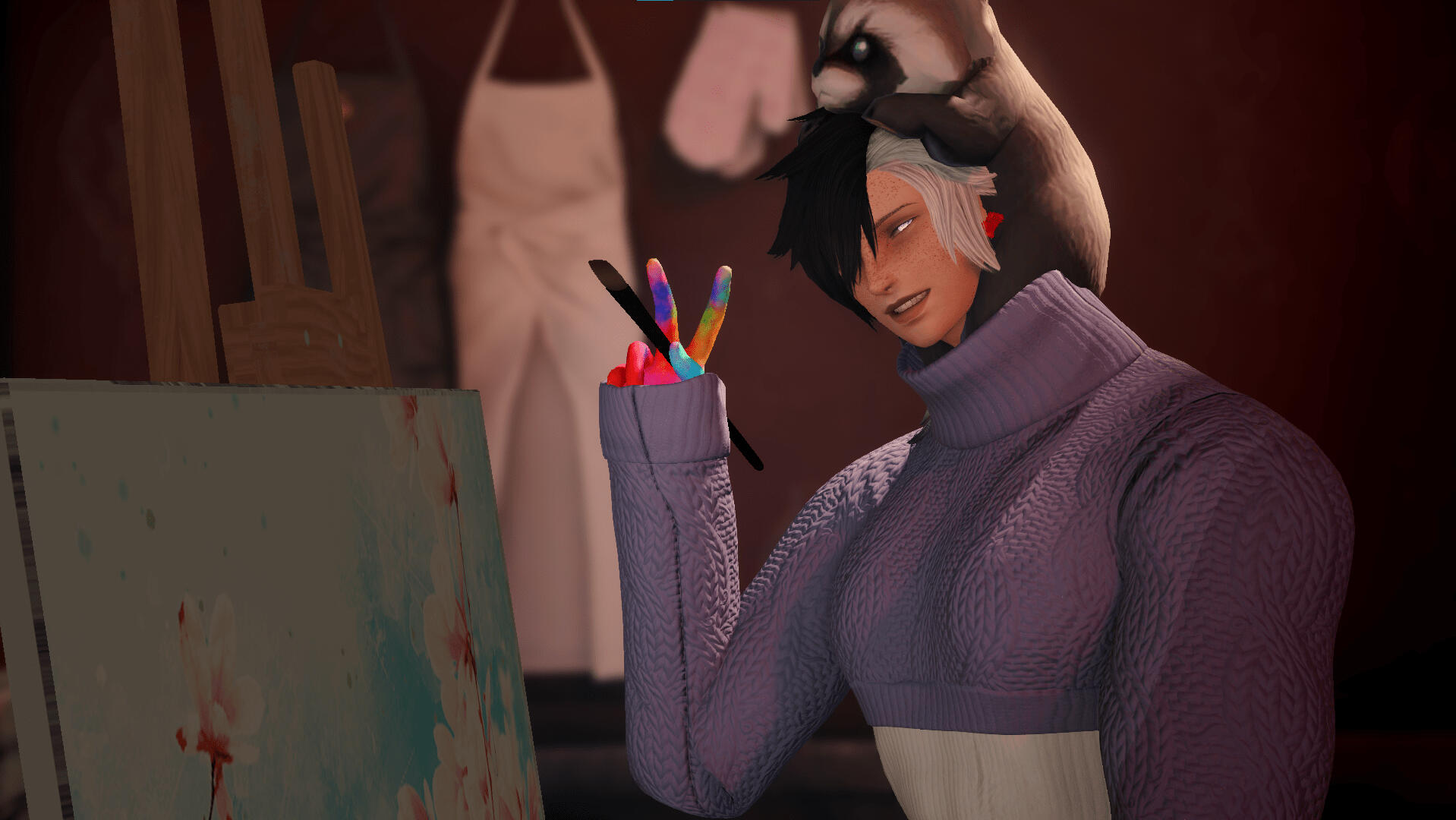 While Marquis and Estelle were hiding in Coerthas and eventually Kugane, Arsene decided that that he wanted to go abroad alone, a bid to try and find himself, and what he wished to do with his life after having been largely been underutilized in his Free Company. Seeking new purpose, he took his lance and began his journey in the Near East, in Thavnair.The first few weeks there were pretty relaxed. He engaged with the populace, learned how to weave baskets and cook the local food, learn snippets of the language, and made friendships he hoped would last. Unfortunately, it was not to be.In true Derinloire fashion, he had the worst luck: the End of Days started while he was in a particularly remote jungle village, in mid-conversation via linkpearl with Marquis, when the sky began to rain fire, and screams could be heard outside as people began to panic. Initially gearing up for an animal attack, he promised to call Marquis back, took up his lance and stepped outside to see a frightful sight.People turning before his eyes into beasts, much like they would on the First when grievously injured by Sineaters, though they were far more grotesque. He fought valiantly over the course of a week, trying to save all that he could and keep them safe, but one by one everyone succumbed to despair until it was only him and a young boy left. While every death had weighed heavily on his heart and mind, this one hit particularly hard when he lost them, too. With no one left, he took his lance, whatever he could salvage from the town for rations, and began to aimlessly walk.Many places along his path suffered similar fates; villages having become ghost towns, and the more he passed by and through, the more he began to be beset by the thought: 'Why them and not me?' and would slowly begin to devolve from there. He would, eventually, make his way back to Yedlihmad, and much to his surprise, Marquis waiting for him.Broken, defeated, he approached his sibling and embraced him, and begged to go anywhere else, which ended up being Kugane. There, he sank into a deep, despondent depression that lasted the better part of a turn, and in that time, Marquis had made up with Kaiser, which allowed him, Marquis and Estelle to return to the Company.After moons of being nearly entirely detached from everyone and everything around him, he finally snapped. He trashed his room and took a palette knife to the base of the wings on his back to hack them off, and proceeded to use it to paint on a fresh canvas. When someone came to check on him, he in turn threatened them with that self-same palette knife, only to be knocked out and dragged to the infirmary, where he was then finally placed on medication to help balance him out and get him back on track toward stability.After some time to finally begin to heal and feel more like himself, he largely put up his lance and instead dedicate himself to the life of an artist, to live a life of peace unless called upon to do otherwise.However, nothing is ever so easy.